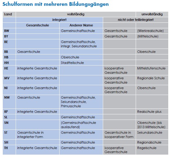 Wofür stehen welche Schulbezeichnungen? Vor 2005 gab es im öffentlichen Schulwesen fast nur vollständige integrierte Schulen (s. Anmerkung), die Gesamtschule hießen; das traditionelle gegliederte Schulwesen existierte vornehmlich in den westlichen Bundesländern. Heute